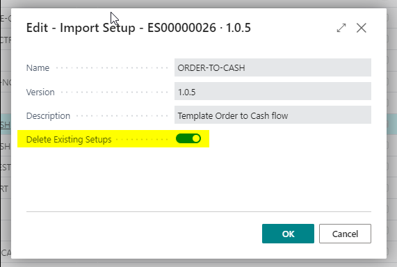 * A popup will ask you to confirm that you like to import the Setup. Press 'OK'.